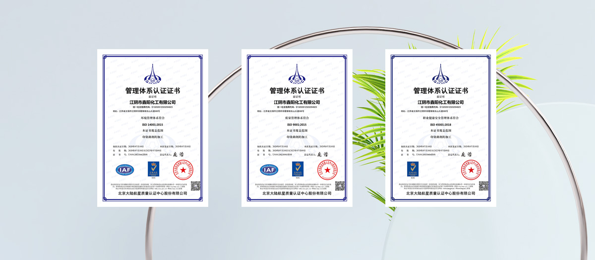 江陰市鑫陽化工有限公司始創于1984年,坐落于經濟發達的江陰市徐霞客鎮工業區,占地面積35畝,廠房面積25000平方米,北臨S38常太高速,西臨G2京滬高速,交通四通八達便利。 鑫陽化工是一家國內知名的紡織印染助劑研發、生產和銷售的專業化公司,擁有年產紡織化學品30000噸的規模,配套設施齊全,DCS、CS系統能夠確保產品品質的穩定,2015年先后獲得ISO-1400環境管理體系、ISO14001質量管理體系和ISO-45001職業健康管理體系的認證,多年來,我們深耕有機硅領域,獲得了一...